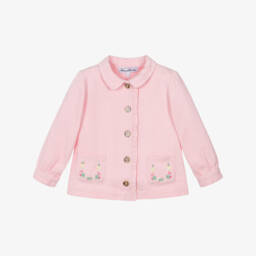 Lovely blue Mini-me jacket for girls by luxury brand Chloé. Made in soft organic cotton denim, this layering style has an ivory sherpa fleece collar for a chic contrast to the look. There is tan brown contrast stitching, popper fastening pockets and tan brown logo embroidery on the hem. The cosy sherpa fleece lining ensures this Chloé piece is great for colder days.