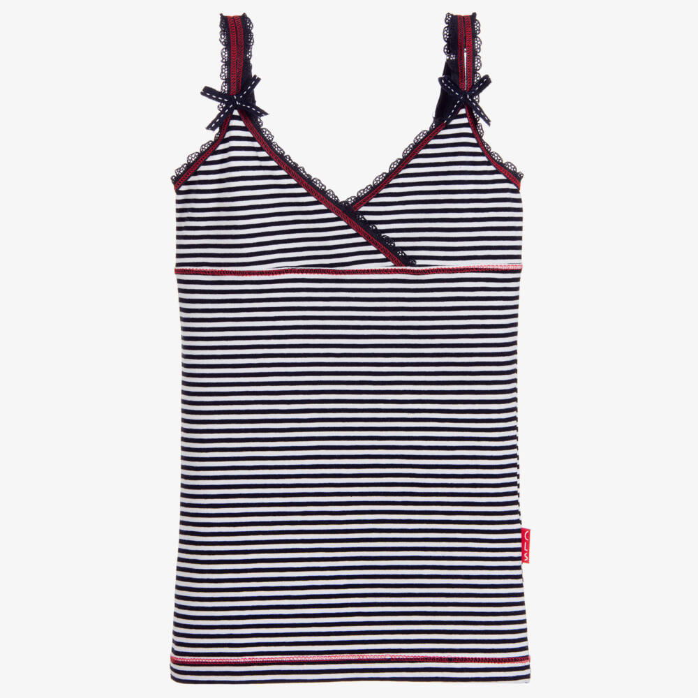 Girls navy blue and white stripe vest by Claesen's, made in soft cotton jersey with adjustable straps.