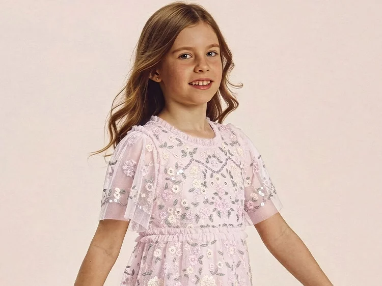 تخيلوا معنا إطلالة الأميرات الأخاذة بفساتين يغمرها الدانتيل الناعم وطبقات من التول الجذاب والترتر اللامع. تعرفوا على ماركة نيدل اند ثريد لملابس المناسبات التي ستكلل الفتيات الصغيرات بإطلالة إستثنائية ليتربعن على عرش الأناقة. مجموعة تنبض بالطبعات الكلاسيكية المستوحاة من حدائق الريف الانجليزي والتصاميم الخالدة ليتألقن كالنجمات.