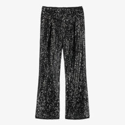 A black and white reversible pencil skirt for girls by DKNY, offering a sleek and modern look. Made in comfortable double-face jersey, this versatile piece allows for two distinct styles in one. It is printed with contrasting logos and styled with a stretchy ribbed waistband and a slit on the back for ease of movement.