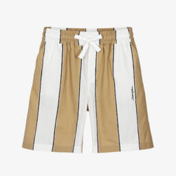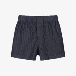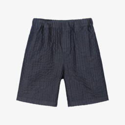 Dark grey shorts for boys by luxury Italian brand Dolce & Gabbana, made in soft cotton jersey. These comfortable, casual shorts have side seam and back pockets and an adjustable drawstring waistband. For a subtle designer touch they have a silver embroidered DG crest logo on the front.