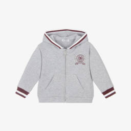 Grey zip-up top by Dolce & Gabbana, combining comfort with a touch of style for boys. Made from soft jersey, it features a cosy hood and practical front pockets. The iconic crest logo on the chest adds a stylish designer finish.