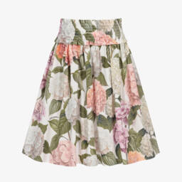 Light grey skirt for girls by luxury Italian brand Dolce & Gabbana, showcasing a classic pleated design. Made in luxuriously soft wool, in a fine jersey knit, it features an elasticated waistband trimmed with navy blue and white stripes. A sophisticated DG crest logo patch at the hem adds a distinctive finish.