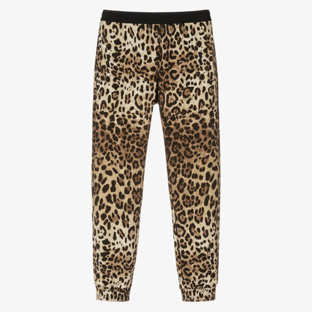 Exuding in luxury, these black, brown and beige joggers for teen girls are from Italian fashion house, Dolce & Gabbana. The brand's signature leopard print design is stylishly patterned all-over, with a stretchy logo jacquard waistband for added designer detail. They are made from an exquisitely soft cotton jersey, with a looped underside and three-pocket styling.