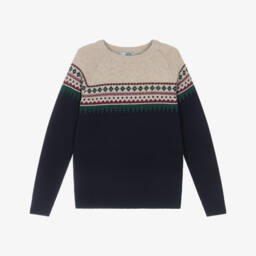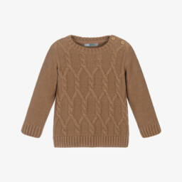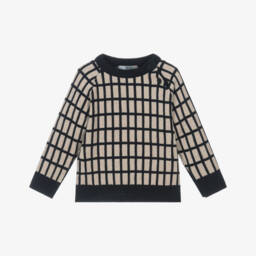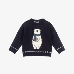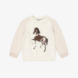 Ivory sweater for girls by Dr. Kid, knitted in soft cotton with added wool and mohair for a touch of luxury and extra warmth. This cosy sweater has charming black bow appliqués on the front, subtly shining with gold thread.