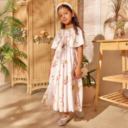 A smart navy blue dress for girls by EIRENE, made in soft viscose blend jersey. Designed with a lovely flared skirt, this long-sleeved dress has a contrasting white pointed collar and pleated frilled cuffs for a classic look. A tonal logo charm sits on the waist and for a neat finish, it fastens on the back with fabric-covered buttons.