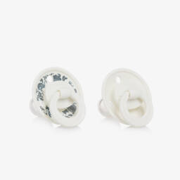 Ensure baby's dummy never gets lost or dirty with this ivory dummy clip for boys and girls by Swedish brand Elodie. The grosgrain ribbon strap is patterned in a charming Garden Leo Toile, with a brown faux leather trim. The branded buckle clip is made from nickel-free stainless steel, and the ring from durable food grade silicone.
