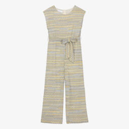 Chic ivory and black jumpsuit for girls by Elsy, ideal for parties or special occasions. This stylish monochrome silhouette has black panelling on the sides and fastens with a concealed zip on the back.