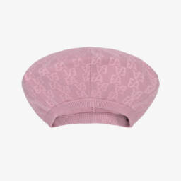 Stylish navy blue beret for girls by Emporio Armani, made in a soft viscose blend knit. It has a tonal EA monogram jacquard pattern for a subtle logo-inspired look, adding a modern twist to the classic look. The stretchy, ribbed brim ensures a comfortable grip around the head.