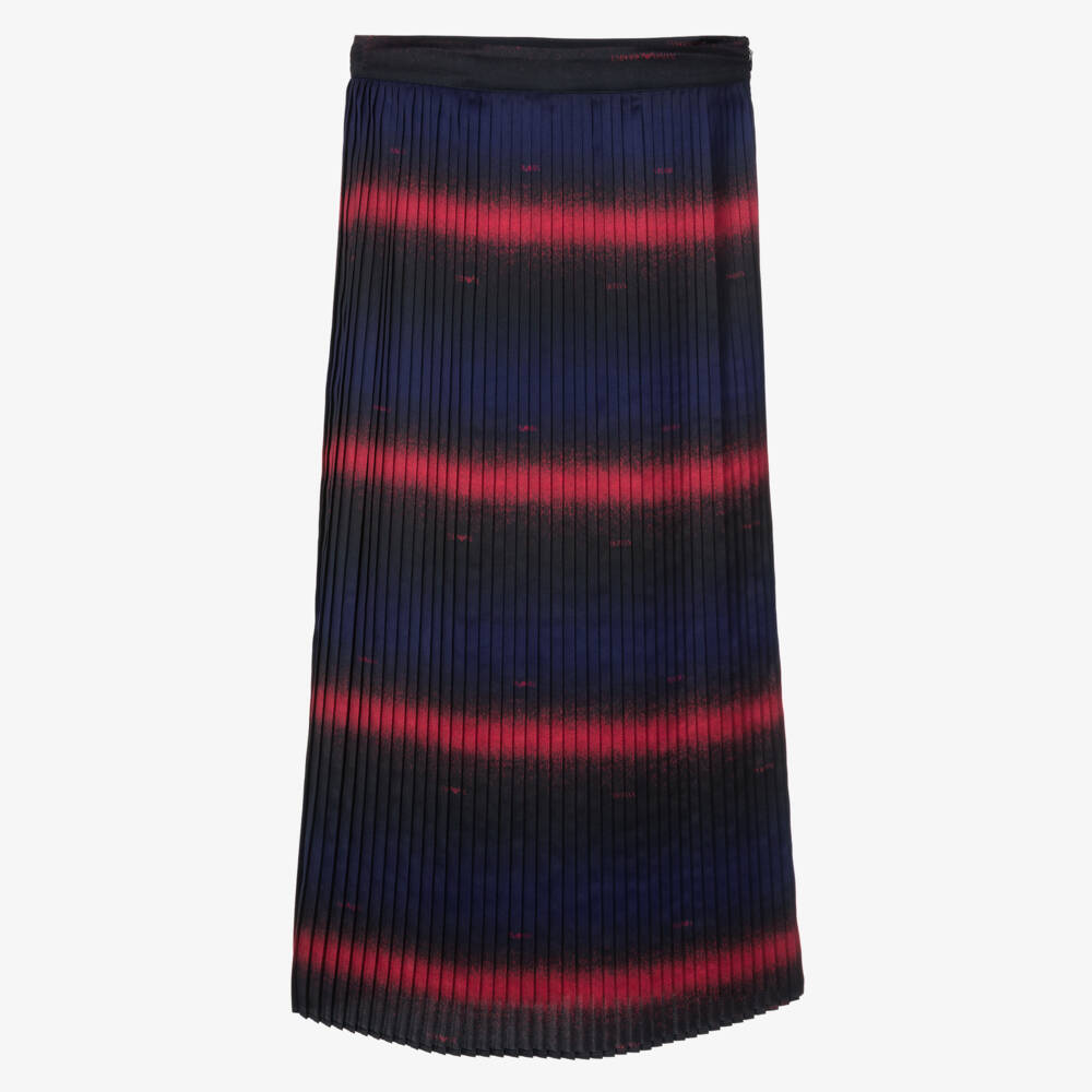 Navy blue pleated skirt for teen girls by Emporio Armani, with a red and black ombré design and subtle red Eagle logo prints. In a contemporary longer length, it is finished with a smart waistband and has a concealed side zip fastening.