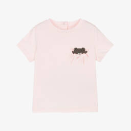 A delightful white T-shirt for baby boys and girls by luxury label Fendi, made in soft cotton jersey. This casual piece has an adorable Fendi bear motif on the chest and signature Fendi Roma embroidery on one sleeve. There are popper fastenings on the back to help with dressing.