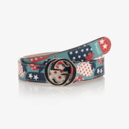 Luxury elasticated belt from Gucci, made in the brand's classic blue and red Web, with navy blue leather trims. This mini version of the adult style secures with a hypoallergenic palladium Double G logo buckle in silver finish.
