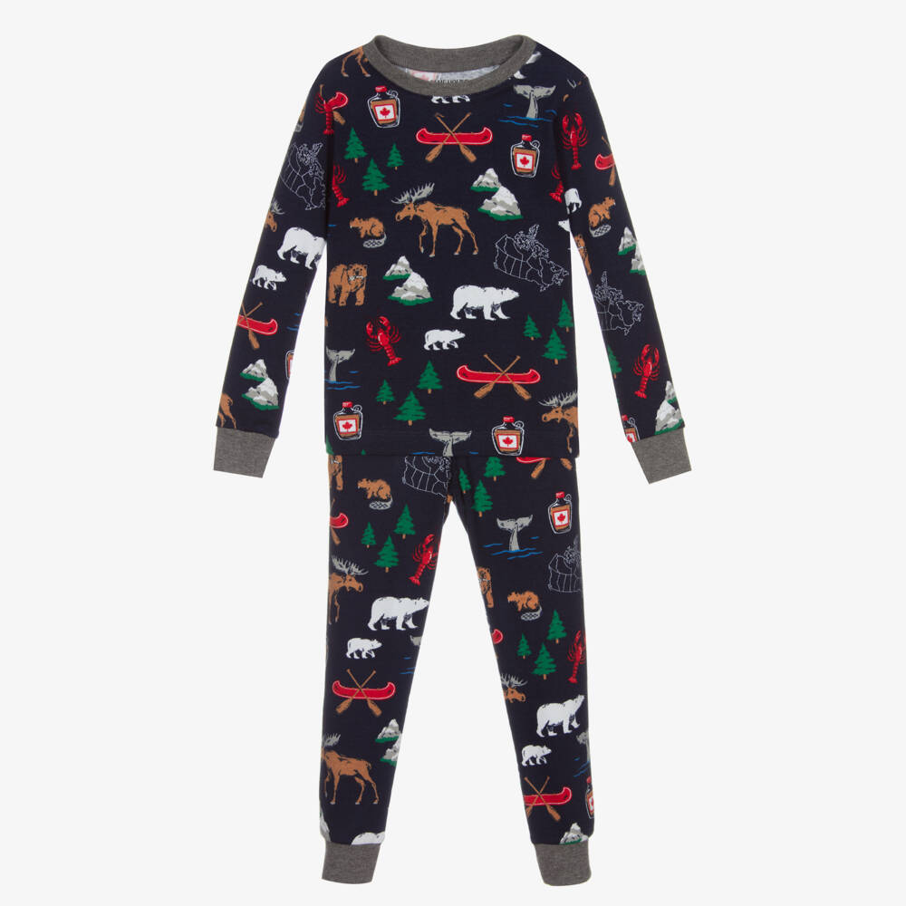 Boys navy blue North American animals print pyjamas by Hatley. Made in soft cotton jersey, these cosy pj's are great for bedtimes and lounging in.