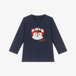An ivory cotton top for baby boys by iDO Mini, made in super-soft jersey. Designed to appear as a top and waistcoat, it has an attached woven panel in grey and red check with decorative buttons for a smart look. It fastens with easy-to-use poppers on the back.