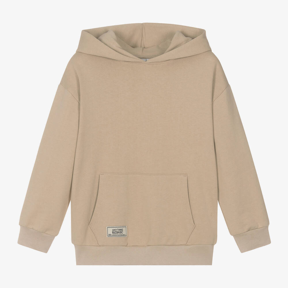 From iDO Junior, a beige hooded sweatshirt for boys with a comfortable relaxed fit. Made in soft, mid-weight cotton jersey, this casual long-sleeved top has a front pouch pocket with an embroidered logo tab to complete the look.