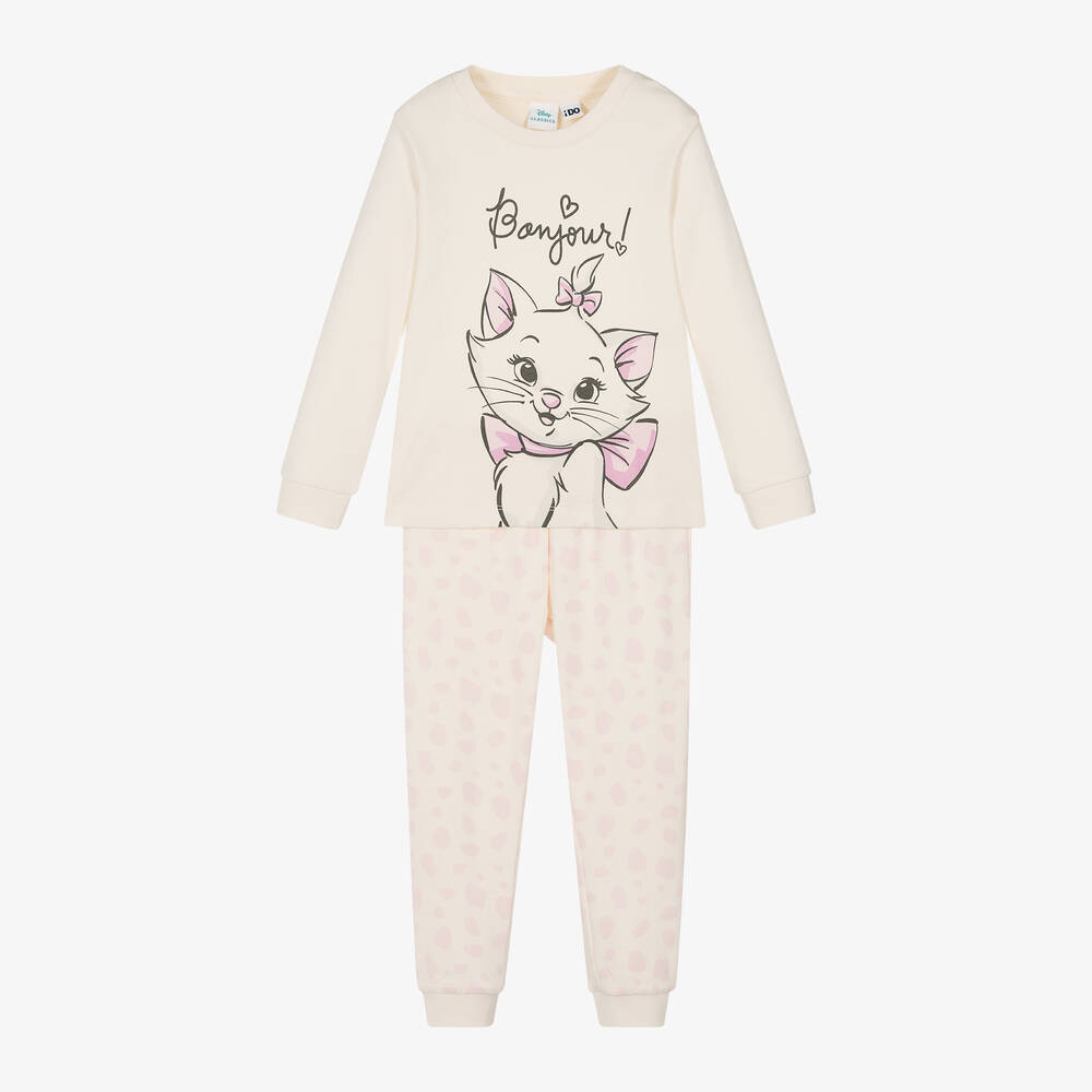 Ivory pyjamas for younger girls by iDO Baby, made in soft cotton jersey for comfort all night long. From Disney's Aristocats, the long-sleeved top has a cute print of Marie on the front. In a light pink animal print, the matching pyjama bottoms have an elasticated waistband and gently ribbed cuffs.