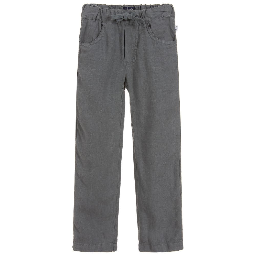 Boys grey trousers from Il Gufo, made in soft and lightweight linen. They have an elasticated waistband, with a useful drawstring.