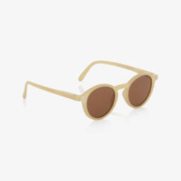 Pale pastel blue sunglasses for little boys and girls by IZIPIZI, made in durable and lightweight plastic. The round-shaped frames have dark grey, category 3 lenses, offering 100% UV protection. The comfortable, flexible arms adapt to your child's growth, with a spring hinge that adapts to all face shapes. The detachable, rubber strap ensures a secure fit. Ideal for outdoor play, these sunglasses combine style with practicality.