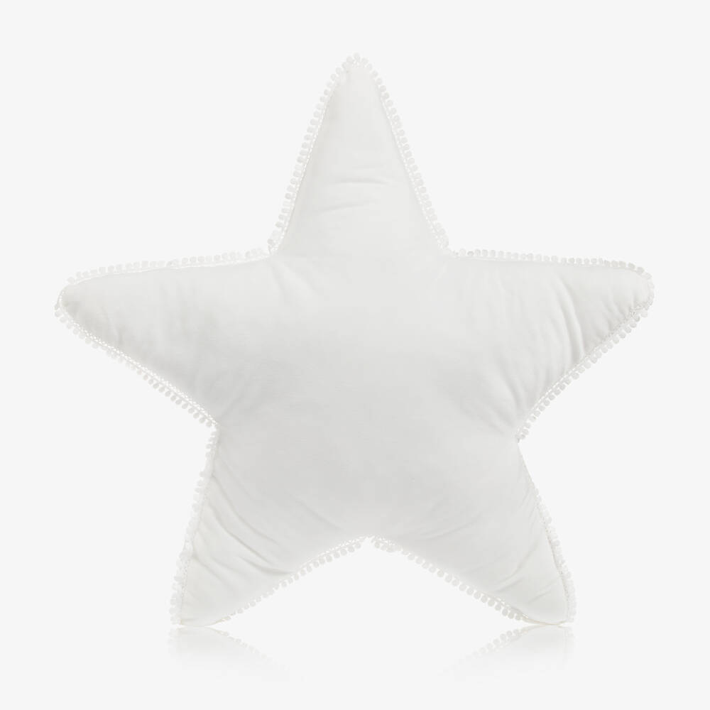 A lovely white star-shaped velvet pillow by Jamiks, with a delicate lace trim. Soft and padded, it makes a sweet, decorative accessory for the nursery and adds cosiness.