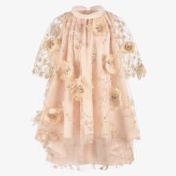 A beautiful red dress for little girls by Junona, with statement sequined puffed sleeves. Made from soft, shimmery organza, this fit and flare dress has velvet side panels embellished with appliqué butterflies, and a giant sequin-embellished bow on the back. Lined in breathable cotton, it has a pretty skirt layered with tulle for a dramatic shape and a concealed zip fastening on the back for a neat finish.