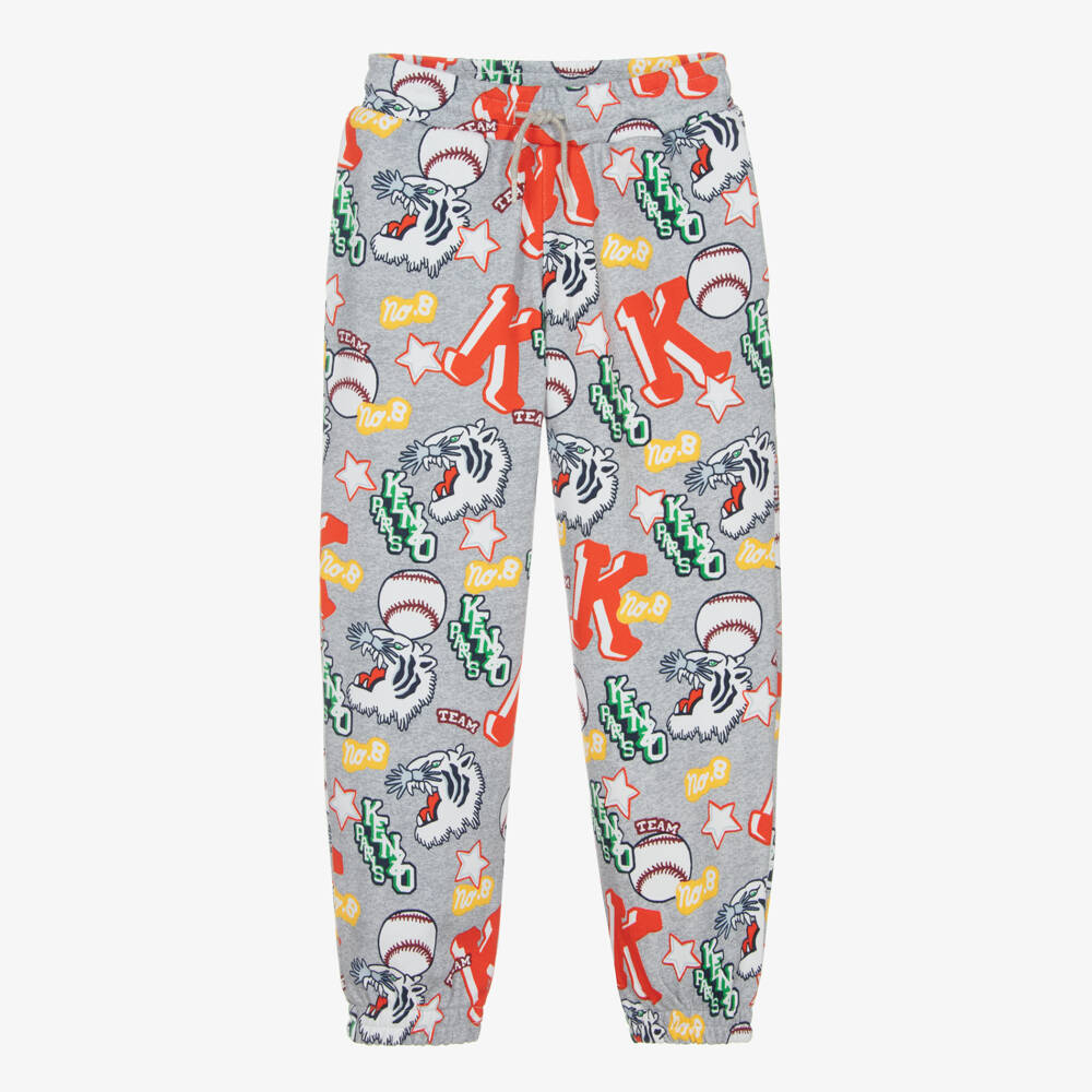 Eye-catching grey marl joggers for teen boys from KENZO KIDS. They are patterned with cool baseball-inspired prints, featuring the designer's Varsity Tiger motifs and logos. Comfortable and casual, they are made in cotton sweatshirt jersey, with a drawstring waistband for an adjustable fit and useful concealed side pockets.