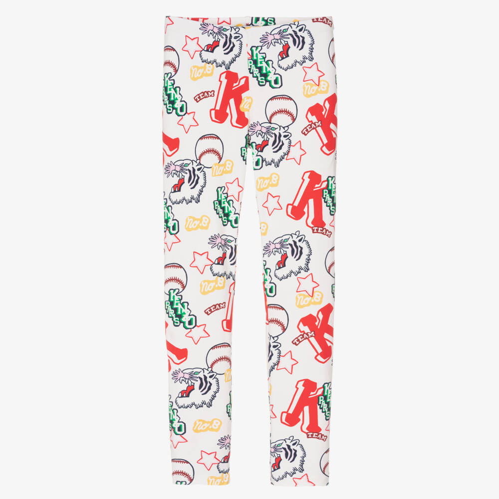 Stand-out ivory leggings for teen girls from KENZO KIDS, with a colourful baseball-inspired pattern. Bold and distinctive, the design features the brand's 'K' motif and Varsity Tiger print. They are made in soft and stretchy cotton jersey with an elasticated waist.