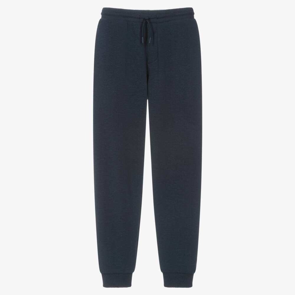 Navy blue joggers for teen boys and girls by KENZO KIDS. For a look that is both casual and stylish, these mid-weight joggers have side pockets and an iconic Kenzo Paris logo printed in white on the back pocket. Made from a soft cotton blend, they have a plush fleece lining and cosy ribbed cuffs. The drawstring waist can be easily altered for a good fit.
