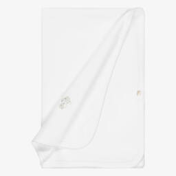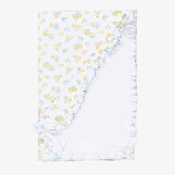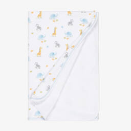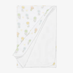 A beautiful pink and white blanket for baby girls by Kissy Kissy, knitted in soft cotton for comfort and cosiness. The delightful ballet-inspired jacquard design, featuring ballet shoes and tutus, appears on both sides for a cute finish.