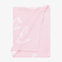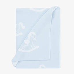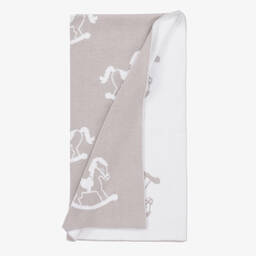 A gorgeous blanket for baby boys and girls by Kissy Kissy, made in a double layer of softly knitted cotton. In a blue and white design, it has a lovely rocking horse pattern. Can also be used in the stroller or car seat.