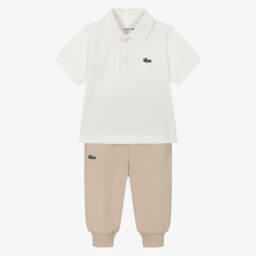طقم كاجوال للأولاد الصغار من لاكوست، يتميز بشعار التمساح الأيقوني للماركة على كلا القطعتين. القميص البولو مصنوع من قطن بيكيه ناعم، مع ياقة مضلعة كلاسيكية وأزرار للإغلاق. البنطلون باللون الكحلي يحتوي على جيوب جانبية عملية وجيب خلفي، مع خصر وأساور مرنة لراحة مثالية.