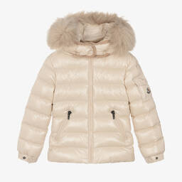 Gorgeously soft ivory faux fur jacket for little girls by Le Chic. Lightly padded for warmth, this lovely jacket has elasticated trims and a large hood to protect your little one from the elements. Fastening easily with a zip at the front, it has a chin guard for safety. There are concealed fur-lined side pockets. For a signature designer finish, it has a logo patch on one sleeve.