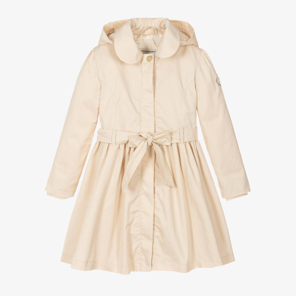 معطف ترانشكوت هودي لون بيج للبنات