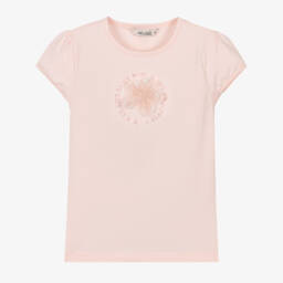 Pink denim jacket for girls with pretty ruffle and pearl bead trim. Designed to sit on the waist, it has logo-embossed, gold-tone buttons, with diamanté centres for a touch of sparkle. Concealed front pockets add a practical finish to this lovely style.
