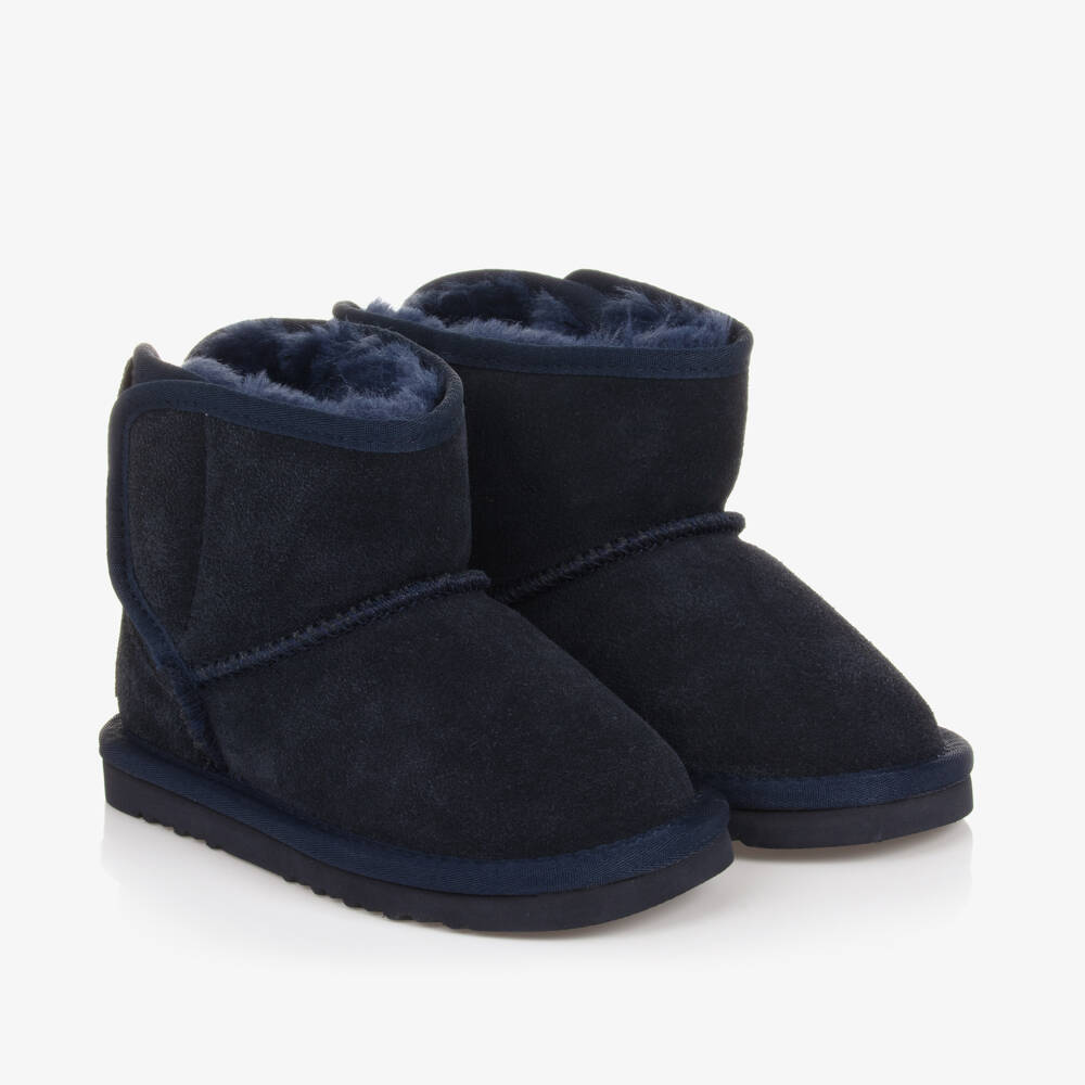 Charming navy blue suede leather boots for little girls by Lelli Kelly. There is a glittery heart on the back for an added touch of sparkle, and a pink logo patch on the heel. They are lined in cosy faux fur for extra warmth and fasten with a velcro tab on the side. Comfortable to wear, the non-slip rubber outsole provides good grip.