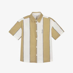 قميص قطن كاروهات لون بني وأسود للأولاد