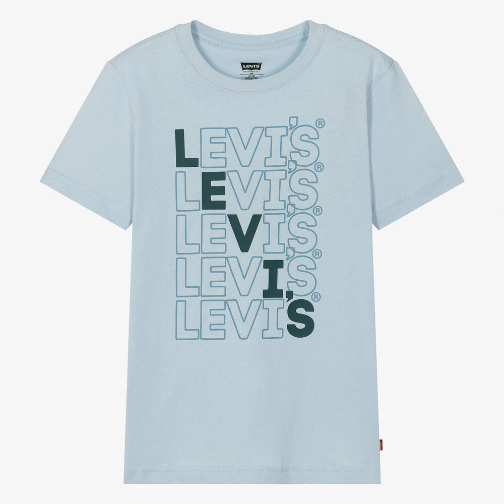 Cool and casual, this pale blue logo T-shirt for teen boys is by American brand Levi's. This short-sleeved tee is made in soft organic cotton jersey a bold navy blue branding on the front and the iconic Red Tab on the side seam.