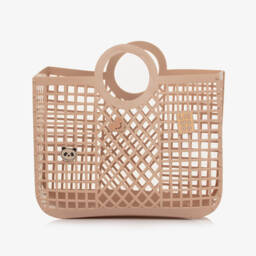 Mint green retro-style basket bag for girls from Liewood. This cute and quirky open-top handbag has circular carry handles and a spacious interior. The label's logo is embossed on one side for a subtle designer touch. It can be dismantled by unfastening the side studs for easy storage. This item contains 60% recycled materials.