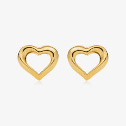 Beautiful yellow gold plated earrings for girls by British brand Little Star. A style for every occasion, these heart-shaped studs will add a lovely touch to any look. The butterfly backs ensure a secure fit. These pretty earrings make a precious gift for someone special, presented in a drawstring pouch and box. A small gift bag is also included.