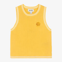Cool white and green cropped top for girls from Marc Ellis. It is knitted in a double layer of soft viscose-blend fabric, with a star and checkerboard jacquard pattern. The neckline and cuffs are softly ribbed for comfort and the designer's logo lettering decorates the hem.