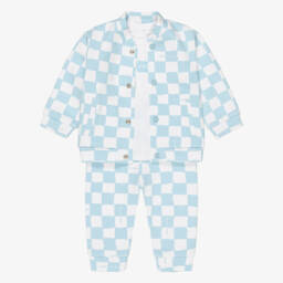 A lovely pale pink tracksuit set for little girls by MARC JACOBS, made in soft cotton jersey. The zip-up tracksuit is patterned in a small Daisy flower print in metallic gold, with a comfortable elasticated waist. The popper-fastening white T-shirt has a black logo print across the chest, embellished with diamanté Daisies for added sparkle. Ideal as a gift, smaller sizes come with a presentation box.