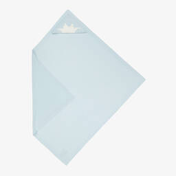 Ivory blanket for baby boys and girls by Marie-Chantal, with the designer's signature Tino Crown motif on the hood. Knitted in a luxuriously soft cotton and cashmere blend, this lovely blanket is ideal for wrapping baby and keeping them cosy and warm.