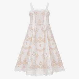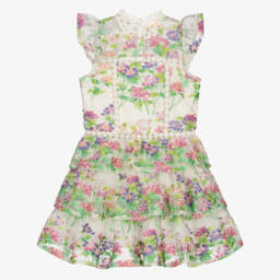 Gorgeous green party or special occasion tulle dress for girls by Marlo Kids, shimmering with sequins. It has a neat, mandarin collar, cute, capped sleeves and a detachable satin floral appliqué sparkling with diamanté on the bodice. A tiered skirt adds to the look, whilst an exposed zip fastens on the back and a voile lining provides extra comfort.