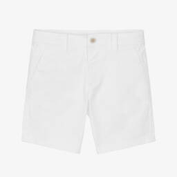 Blue chino-style shorts for baby boys by Mayoral, made in soft and comfortable cotton twill. Ideal for both casual styling and smarter occasions, they feature useful pockets and a single button fastening. The waistband is adjustable to ensure a great fit.