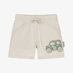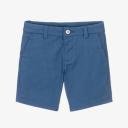 In a light blue wash, these stretch denim shorts for baby boys are by Mayoral. Easy to pull up and comfortable to wear, they have a gently elasticated waist. There are decorative ties at the front and two embroidered patch pockets on the back.