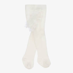 Delightful white tights for baby girls by Mayoral, made in a super soft and stretchy Modal blend. Comfortable to wear, they have charming ruffled lacy trims on the back, adding a lovely finishing touch to any outfit.