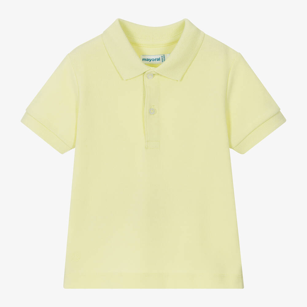 Lime green polo shirt for little boys by Mayoral, made from soft and breathable cotton piqué. Easy to pair with shorts and jeans, this casual short-sleeved top has a ribbed collar and cuffs. It has a buttoned placket on the front and split side vents for easy wear.