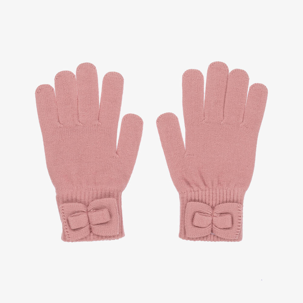 Mid pink gloves for girls by Mayoral, knitted in a soft viscose blend. These gently ribbed gloves, decorated with a pretty bow on the cuff, keep hands warm and cosy right through the colder months.