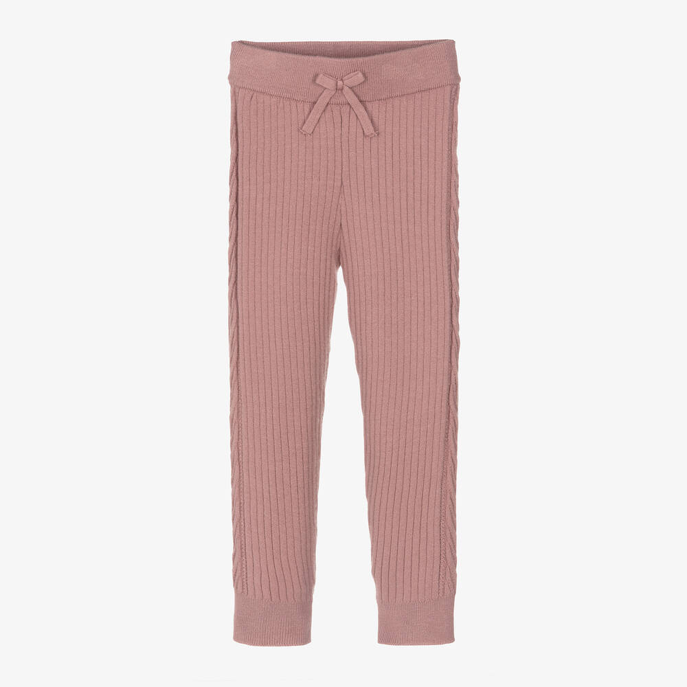 Lovely duskypink ribbed leggings for girls by Spanish brand Mayoral. Super soft and comfortable, they are knitted in a viscose blend with a cable knit pattern on the sides. A bow on the front of the elasticated waistband adds a pretty finishing touch.