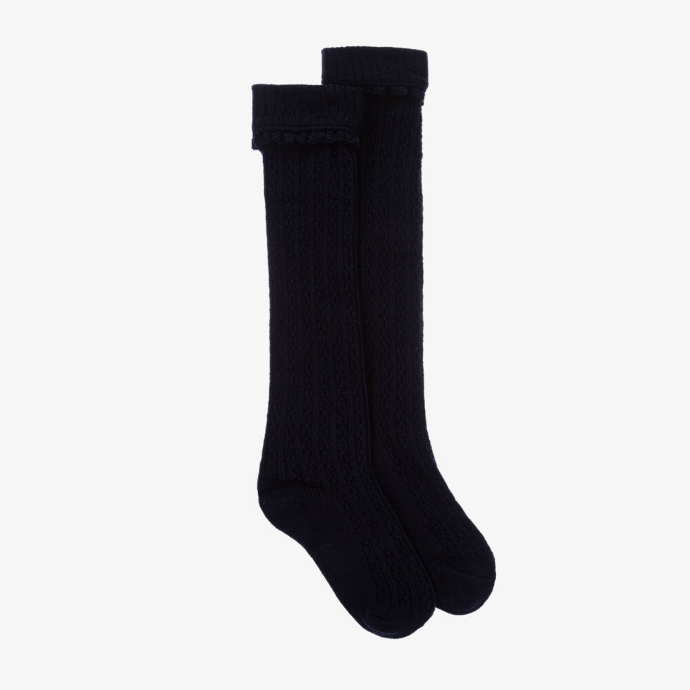 In a lovely knee-high length with lace trims, these navy blue socks for teen girls are from Mayoral. Easy to style with a casual outfit, these cotton socks are knitted in a cable knit design.