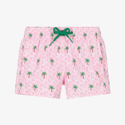 Navy blue and white swim shorts for boys by MC2 Saint Barth, made in soft recycled fabric. Comfortable for swimming, these lightweight shorts have a drawstring waistband and an antibacterial mesh lining. They have neat pocket detailing and red Saint Barth embroidery on one leg. The patch pocket on the back has a velcro closure.